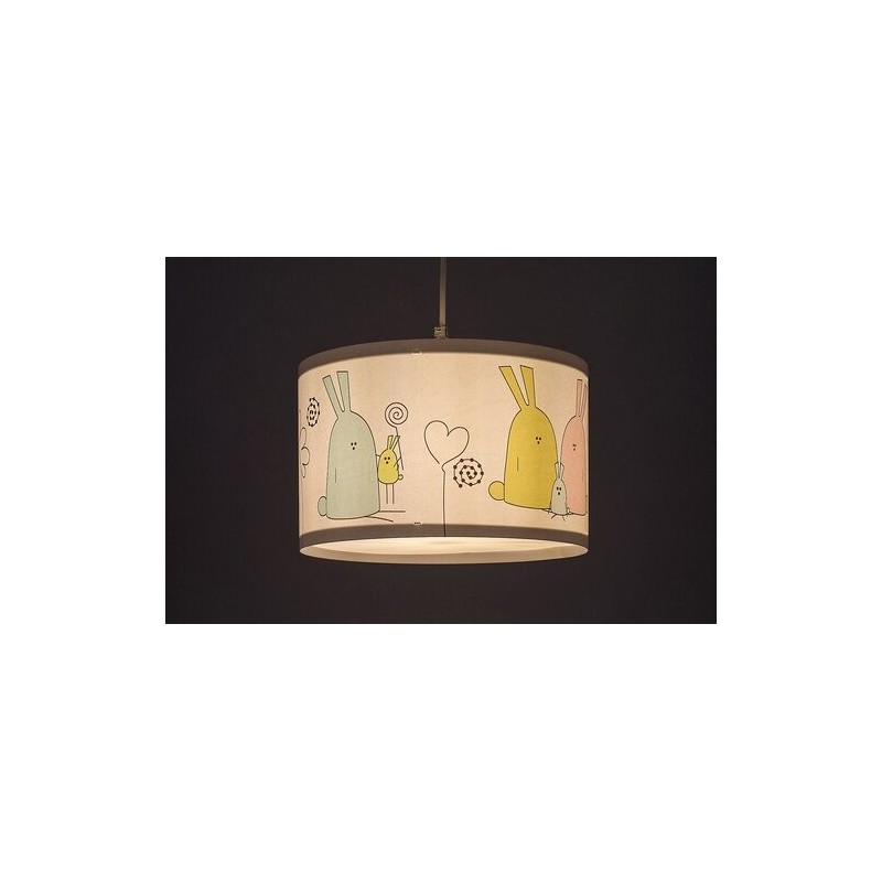 Lampa suspendată pentru copii Rabalux Flappy este un model creat de Rabalux. Este ideală pentru cei care doresc să facă camera copiilor mai primitoare cu motive adorabile și calde. Lampa suspendată este realizată în alb, cu un corp din plastic și un abajur din material textil. Abajurul este cilindric, deschis în partea de jos și decorat cu motive stilizate de iepurași colorați. Culorile predominante ale modelului sunt albastru, roz și galben, care conferă un aspect proaspăt și vesel. Lampa poate fi fixată de tavan cu ajutorul unei baze decorative mici, cilindrice. Poate fi utilizată cu un singur bec cu o putere de până la 40 W. Tipul de soclu este E27. Dacă dorești să amplifici atmosfera confortabilă și intimă, alege un bec care emite lumină albă caldă. Lampa suspendată pentru copii este furnizată fără sursă de lumină.