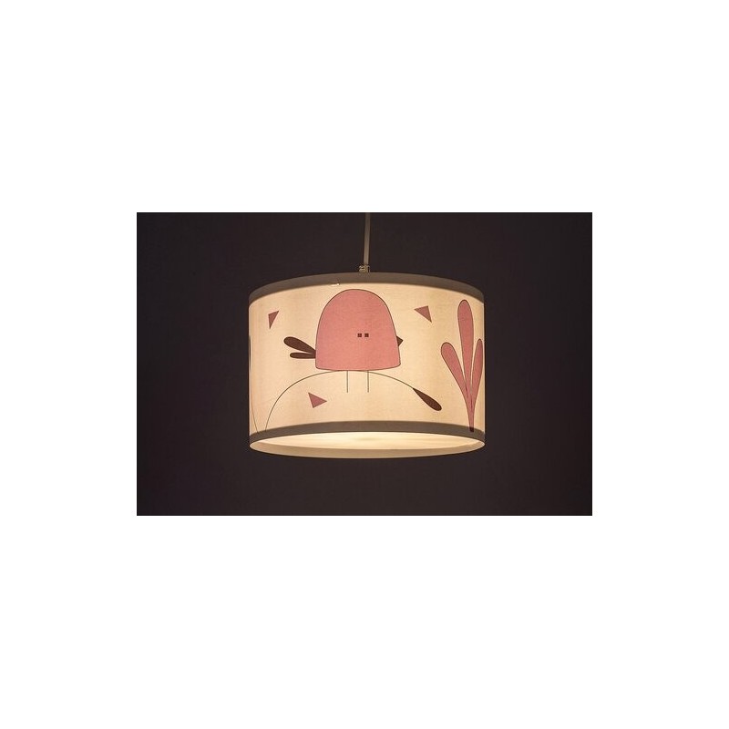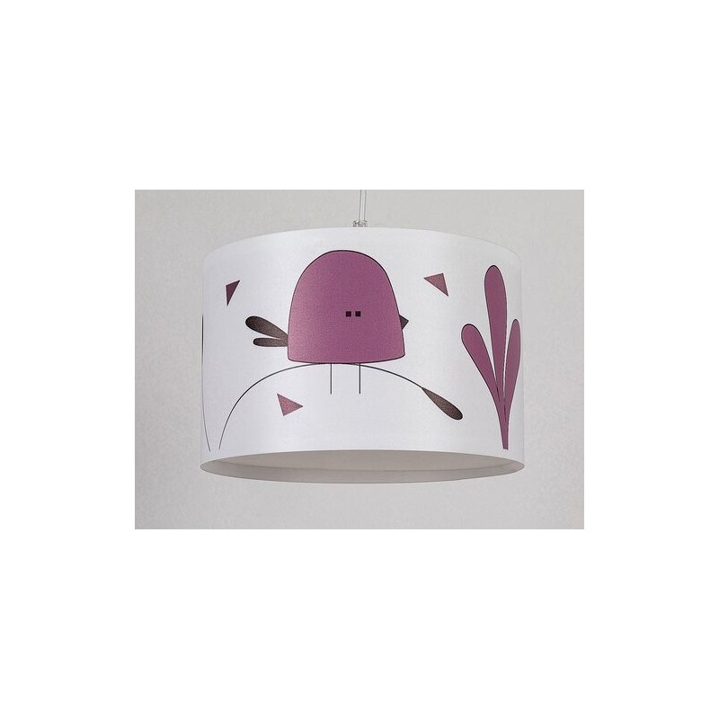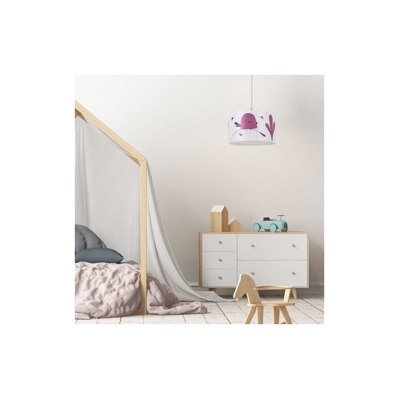 Lampa suspendată pentru copii Rabalux Fowly este un model creat de Rabalux. Este ideală pentru cei care doresc să facă camera copiilor și mai primitoare cu motive drăguțe și vesele. Lampa suspendată este realizată în culoare albă, cu un corp din plastic și un abajur din material textil. Abajurul este cilindric, deschis în partea de jos și decorat cu un motiv fermecător de păsărică stilizată, de culoare mov. Lampa poate fi fixată de tavan cu ajutorul unei baze decorative mici, cilindrice. Poate fi utilizată cu un singur bec cu o putere de până la 40 W. Tipul de soclu este E27. Dacă dorești să creezi o atmosferă confortabilă și intimă, alege un bec care emite lumină albă caldă. Lampa suspendată pentru copii este livrată fără sursă de lumină.